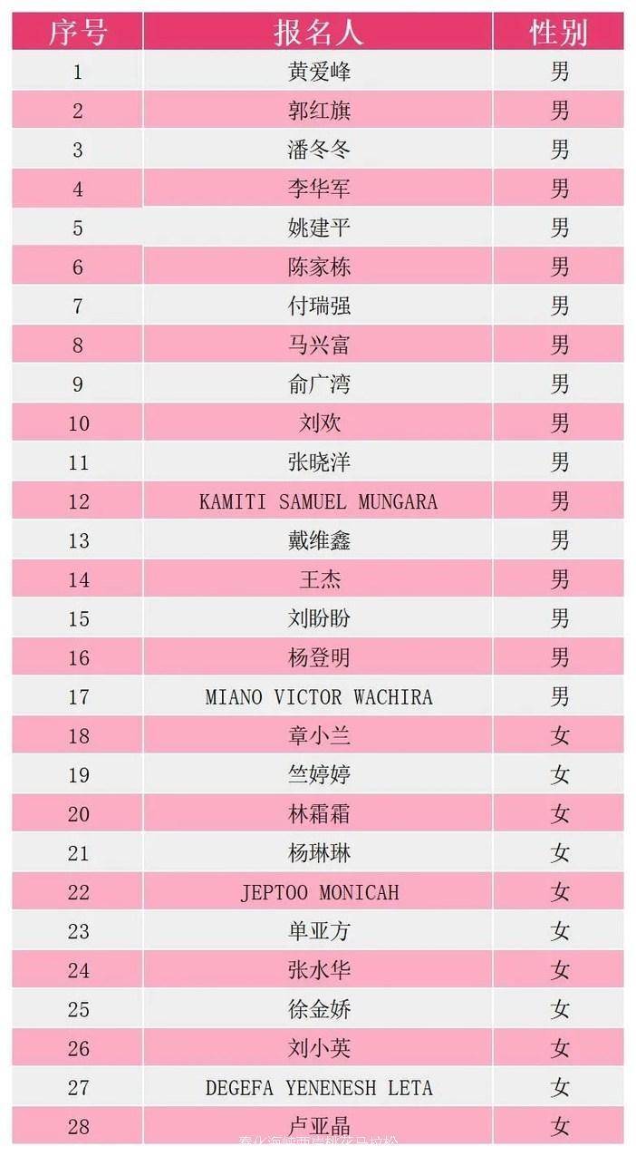 经过选手自行申报和组委会审核,最终可由第一方阵集结起跑的选手名单如下: